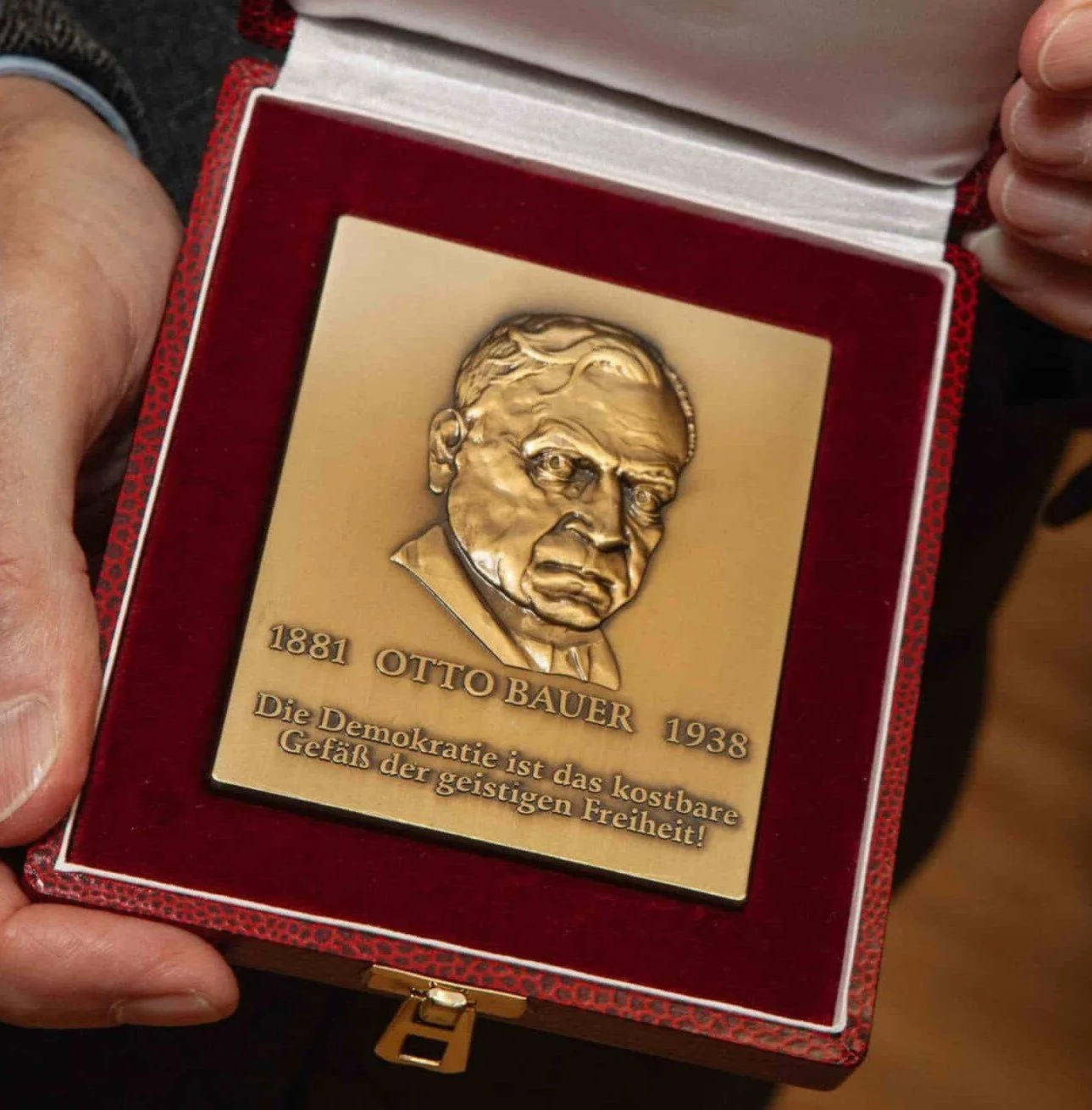 Die Otto-Bauer-Plakette ist Mitgliedern der Sozialdemokratischen Partei Österreich (SPÖ) vorbehalten. Sie wurde und wird vorrangig an Widerstandskämpfer:innen, Überlebende des Holocausts und Zeitzeug:innen verliehen, aber auch an später Geborene, die sich Verdienste im Kampf gegen Rechtsradikalismus und Faschismus erworben haben.